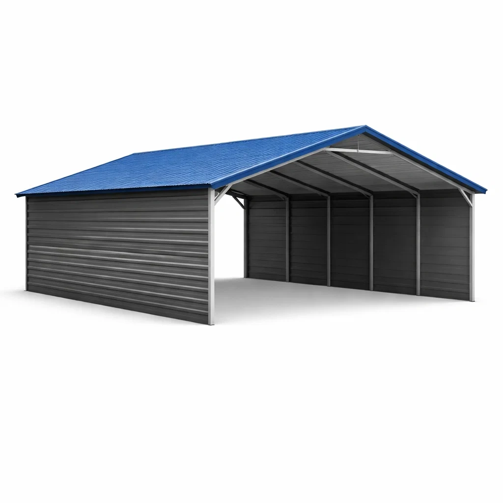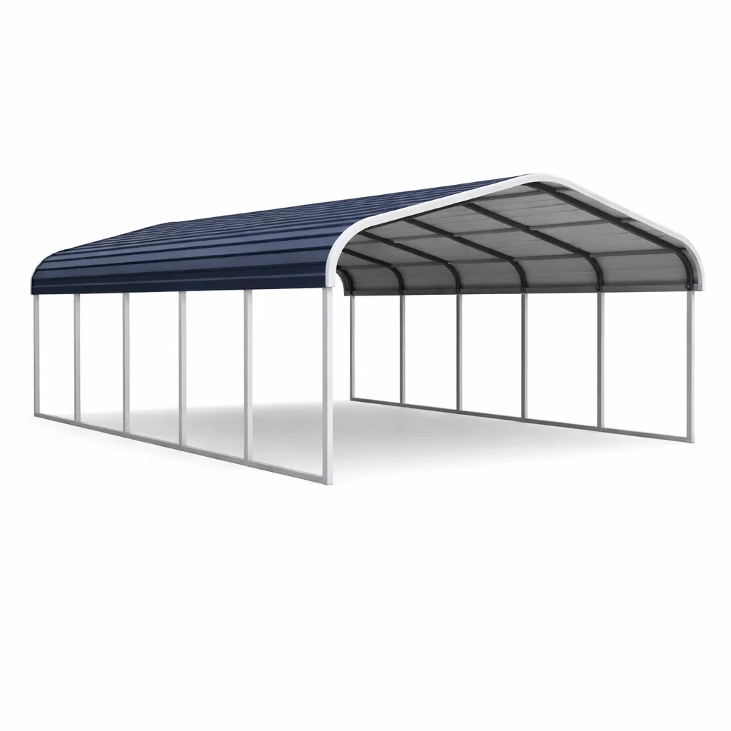 Abri pour voiture double en métal avec toit en acier galvanisé bleu gris