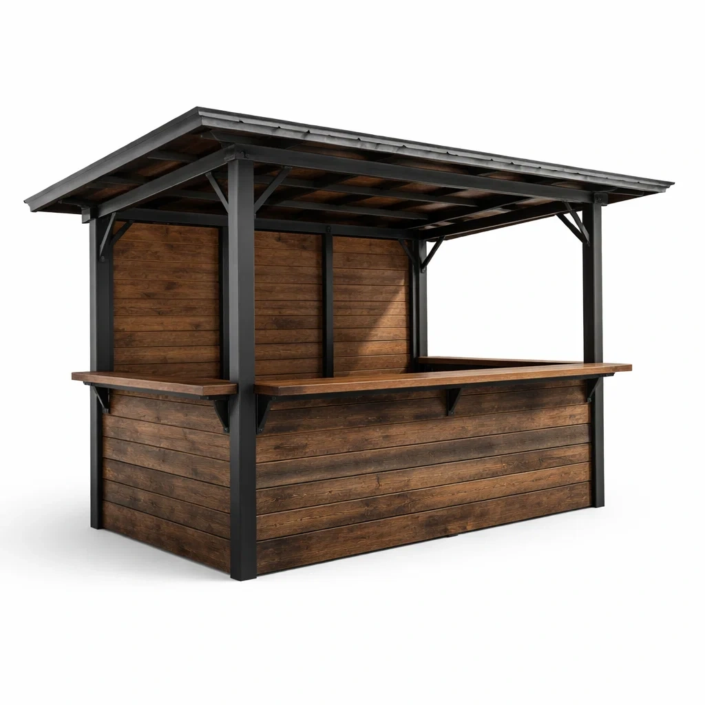 Kiosque bar de jardin en métal et bois marron noir 250x150x240 cm